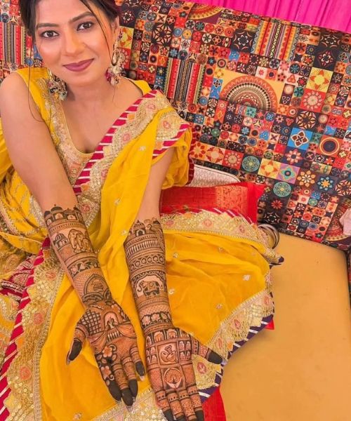 Raj Mehandi Designer is a well-known mehndi artist specializing in intricate and beautiful bridal mehndi designs. Their work includes a variety of styles, such as Rajasthani, Arabic, Bombay, and Marwari designs, each crafted with precision and creativity.